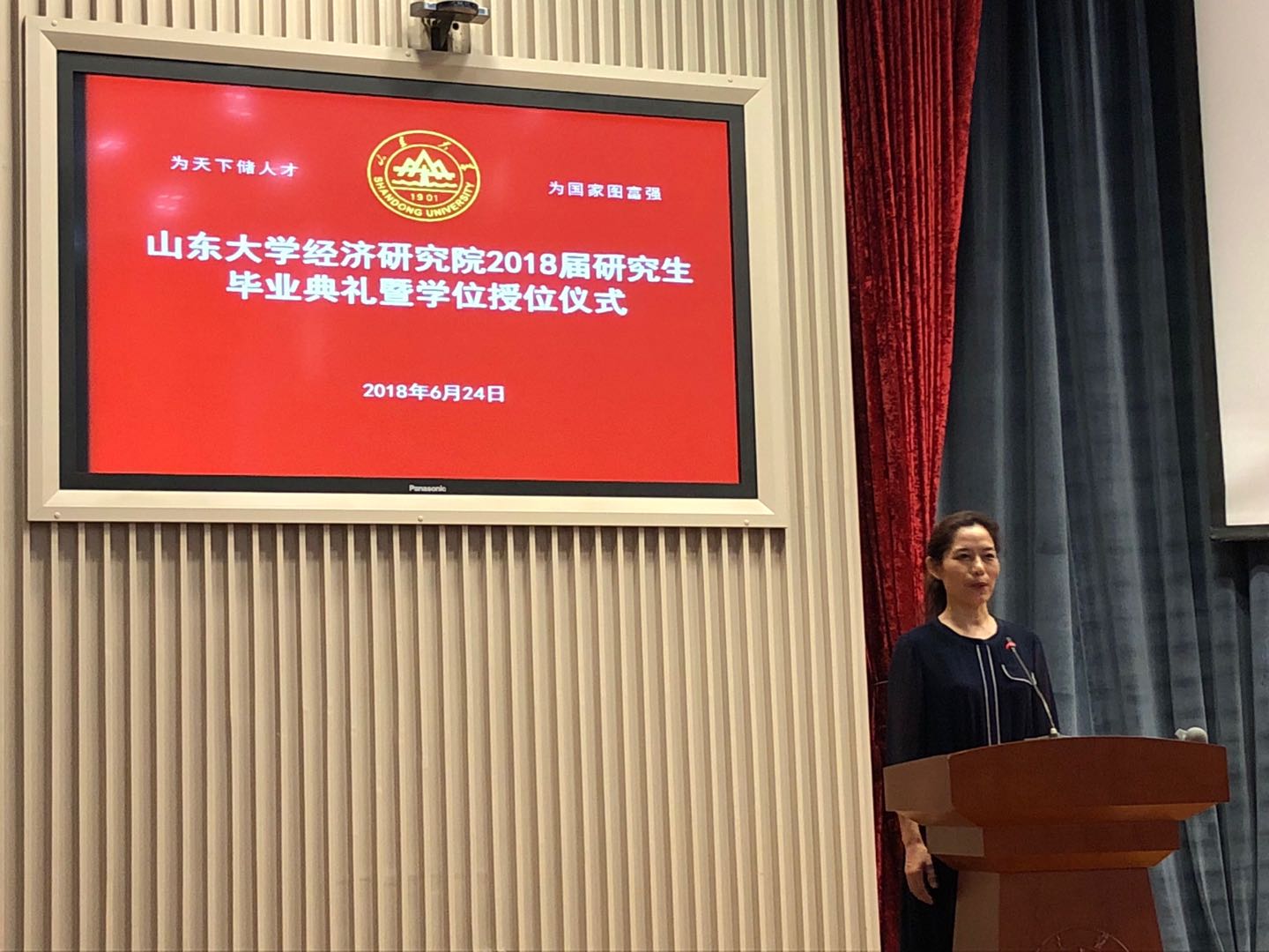 6月24日上午8点,经济研究院2018届研究生毕业典礼暨学位授位仪式在中心校区知新楼A座三层报告厅举行。学院学位评定分委员会委员、学院教师、2018届博士、硕士毕业生、在校硕士生、博士生及毕业生亲友参加了典礼。毕业典礼由学院副院长孙涛副教授主持。